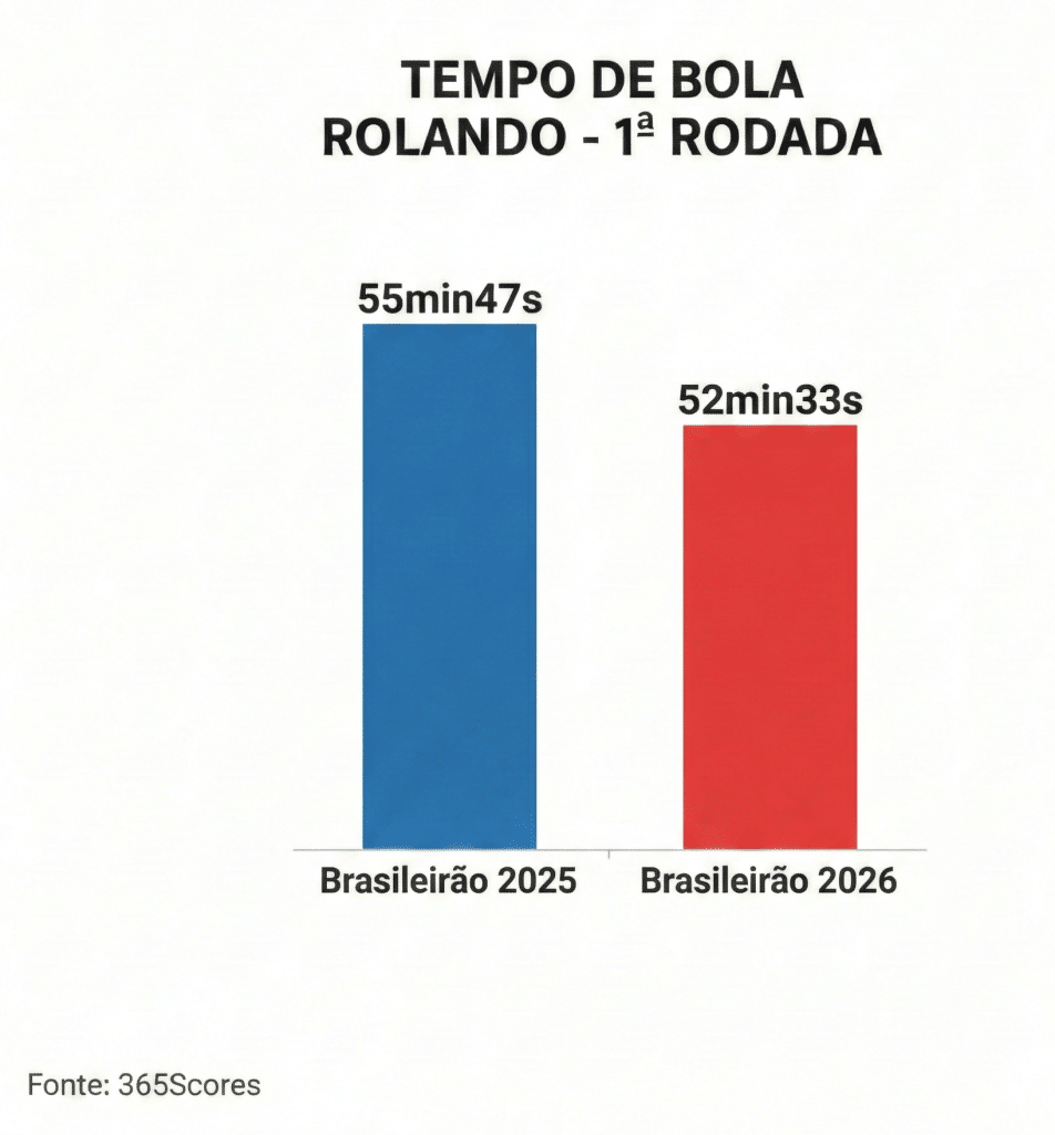 Enquanto a 1ª rodada da edição passada teve 55 minutos e 47 segundos de média de bola rolando, a rodada de abertura de 2026 teve 52 minutos e 33 segundos.