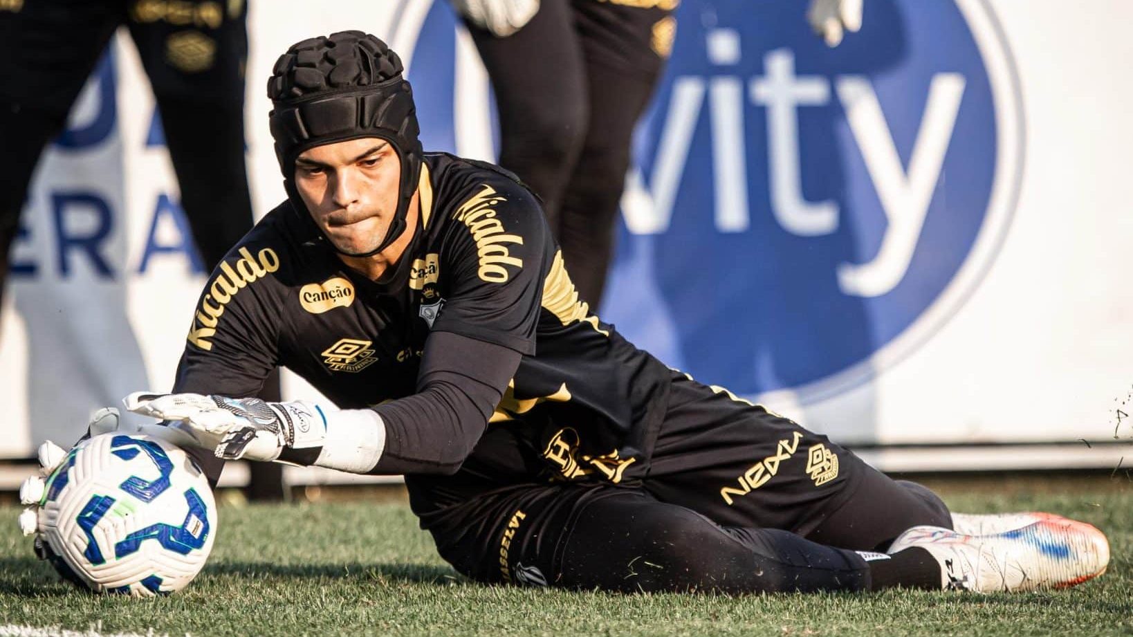 Após ficar de fora dos treinos durante a semana por conta do protocolo de concussão cerebral da CBF, o atleta santista de 24 anos esteve presente nos treinamentos de sexta-feira (19) e hoje. A novidade foi um capacete, que será usado para proteger a área afetada.