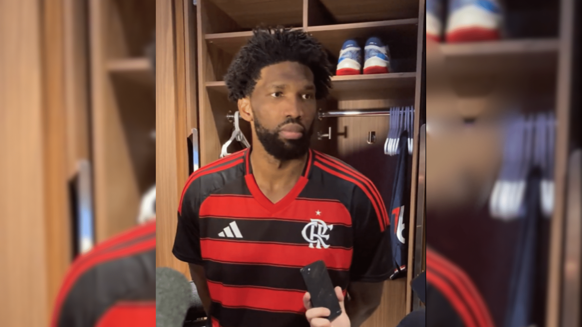 Fellipe Perdigão01/12/2025Estrela da NBA, Joel Embiid dá entrevista com camisa do Flamengo após título da Libertadores