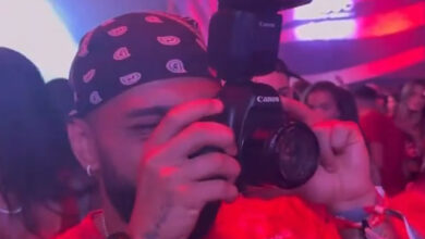 Gabigol é flagrado “tietando” Léo Pereira e Karoline Lima em camarote no Rio