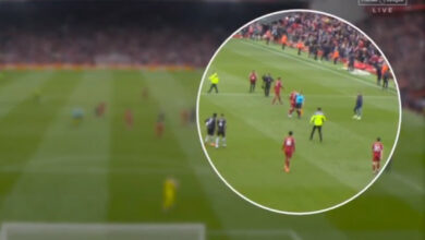 Bandeirinha acerta cotovelada em Robertson no intervalo de Liverpool x Arsenal