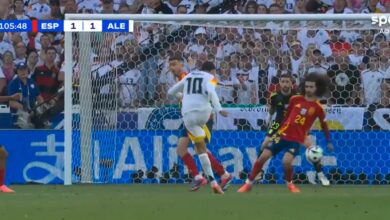 O início da partida entre Espanha e Alemanha, válida pelas quartas de final da Eurocopa, ficou marcada por dura entrada…