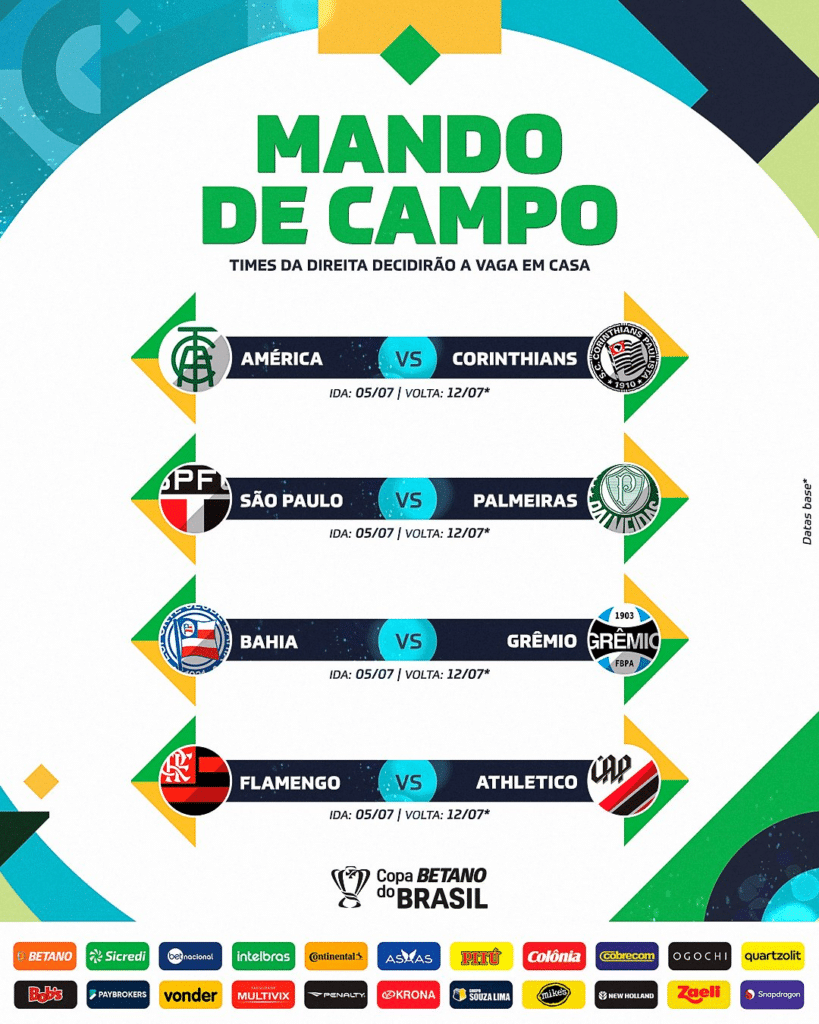 Já os jogos de volta serão na semana de 19 de julho, ou seja, a CBF também não terá essas datas para marcar partidas da Copa do Brasil de times que estejam nessa etapa da Sul-Americana. A solução seria jogar os confrontos para a semana de 26 de julho, que estará livre.