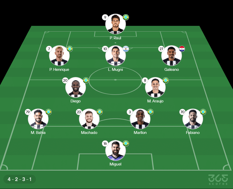 - Provável escalação do Ceará: Fernando Miguel; Fabiano, Marllon, Willian Machado e Matheus Bahia; M. Araújo, Diego, Galeano, Mugni e Pedro Henrique; Pedro Raul.