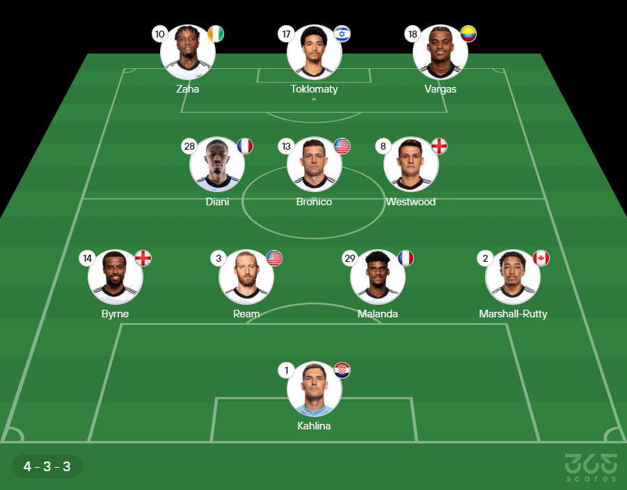 - Provável escalação do Charlotte FC: Kahlina, Byrne, Ream, Malanda e Marshall-Rutty; Diani, Bronico e Westwood; Zaha, Toklomaty e Vargas