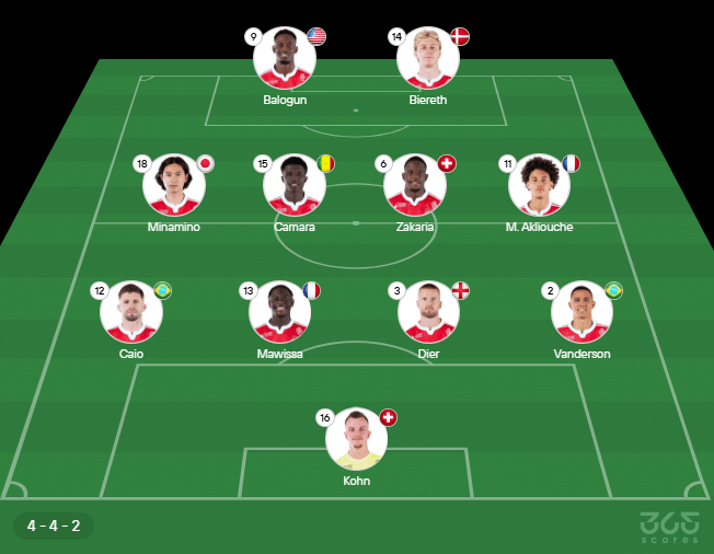 Provável escalação do Monaco: Kohn; Caio Henrique, Mawissa, Eric Dier e Vanderson; Minamino, Camara, Zakaria e Akliouche; Balogun e Biereth. Técnico: Adi Hütter.