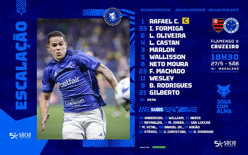 Após a derrota para o Cuiabá, por 1 a 0, na última rodada do Campeonato Brasileiro, o Cruzeiro enfrentará o Flamengo, neste sábado (27), às 18h30, no Maracanã. Para a partida, o treinador Pepa terá que lidar com muitos desfalques.