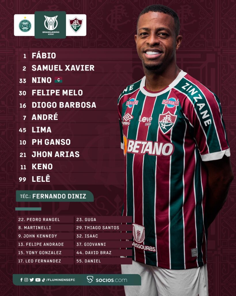 Veja abaixo a escalação do Fluminense: