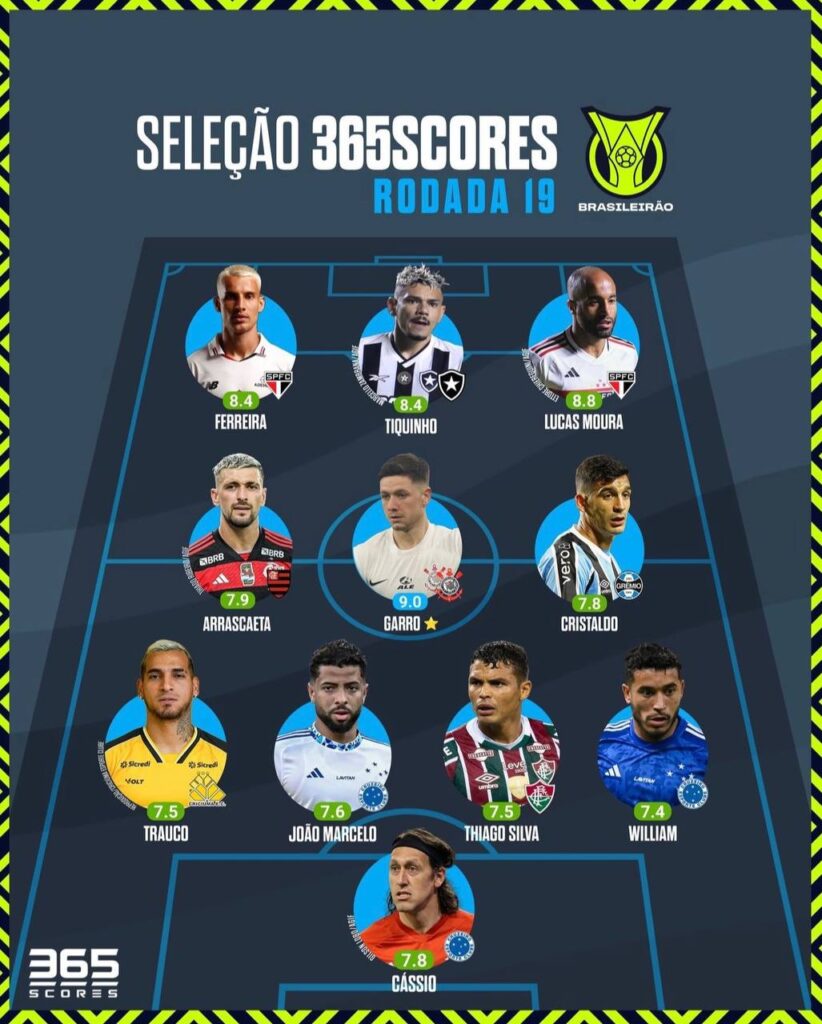 Na última quinta-feira (25), chegou ao fim a 19° rodada do Campeonato Brasileiro, com uma boa disputa pela liderança da tabela e contra o rebaixamento. Na seleção da rodada 365Scores, o Cruzeiro teve mais destaque, com três representantes.