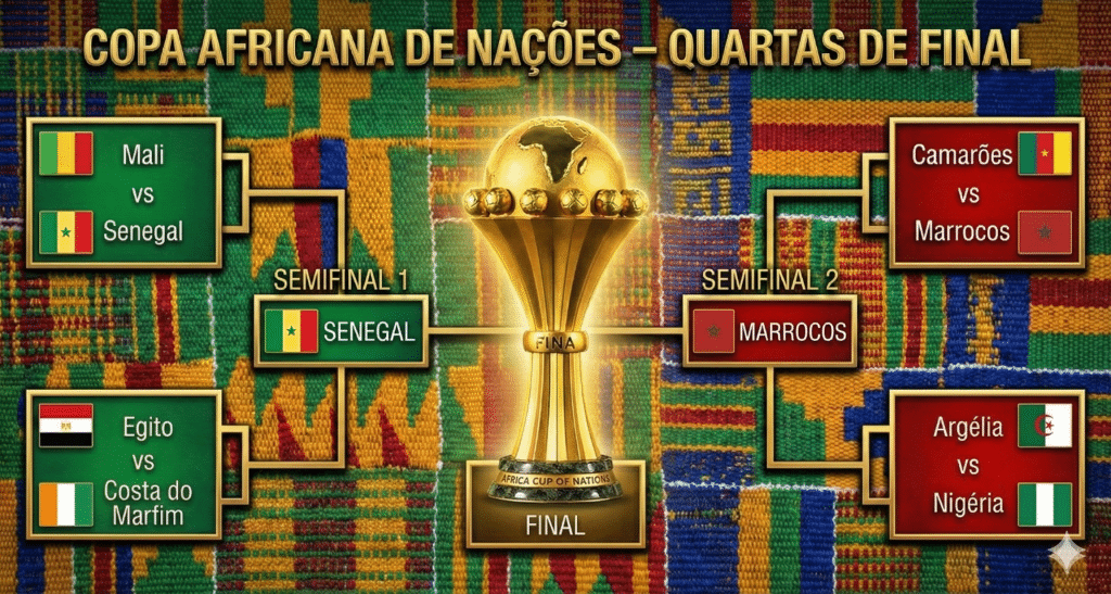 Nas semifinais da Copa Africana de Nações, o Senegal aguarda o vencedor de Egito x Costa do Marfim e o Marrocos espera o ganhador de Argélia x Nigéria. Os dois jogos acontecerão neste sábado (10).