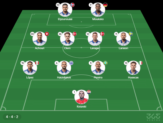 - Provável escalação do Copenhagen: Kotarski; López, Hatzidiakos, Gabriel Pereira e Huescas; Achouri, Clem, Lerager e Larsson; Elyounoussi e Moukoko.