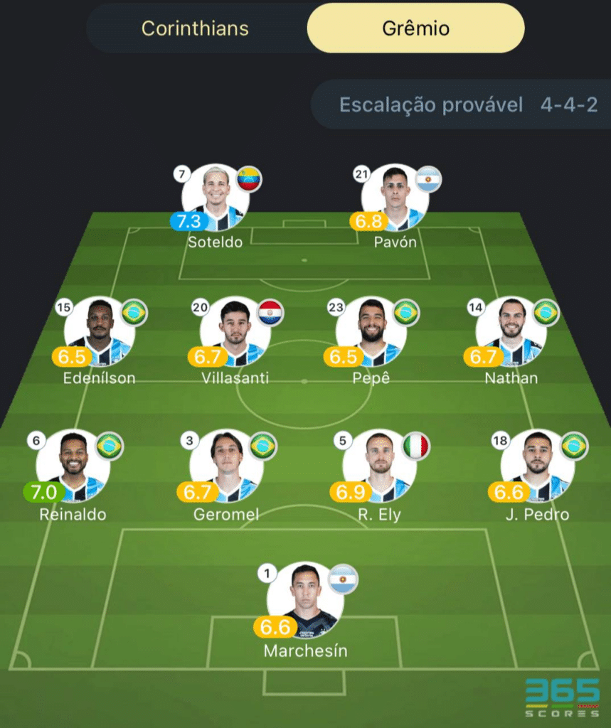 Quer saber os prognósticos de Corinthians x Grêmio? Acesse o site do 365Scores e confira todos os jogos em andamento, tabela de classificação e mais!