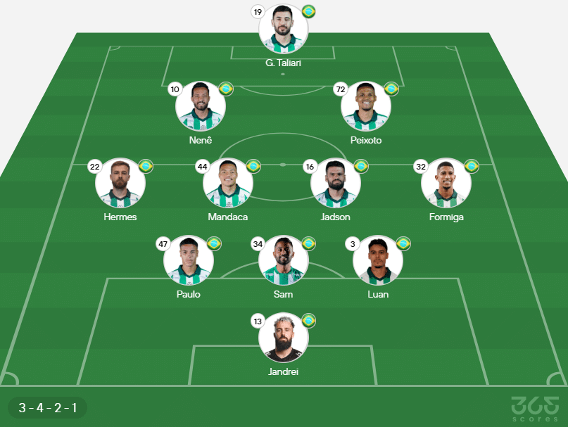 Para o confronto, o técnico Thiago Carpini poderá contar com o retorno do volante Caique, que volta a ficar à disposição após cumprir suspensão pelo terceiro cartão amarelo.