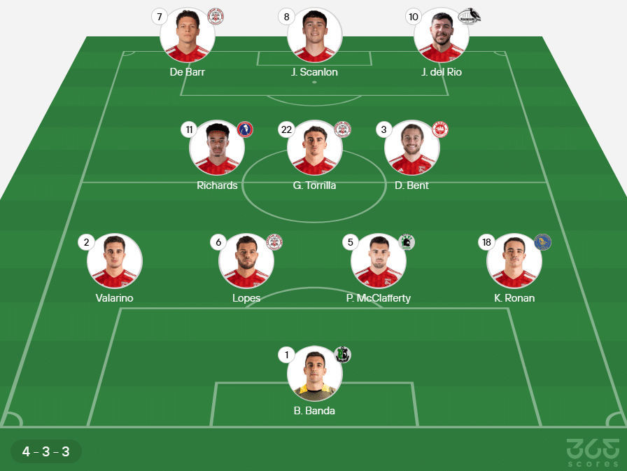 Provável escalação de Gibraltar: Banda; Kian Ronan, McClafferty, Bernardo Lopes e Valarino; Graeme Dan Bent e Richards; Julian del Rio, De Barr e James Scanlon.