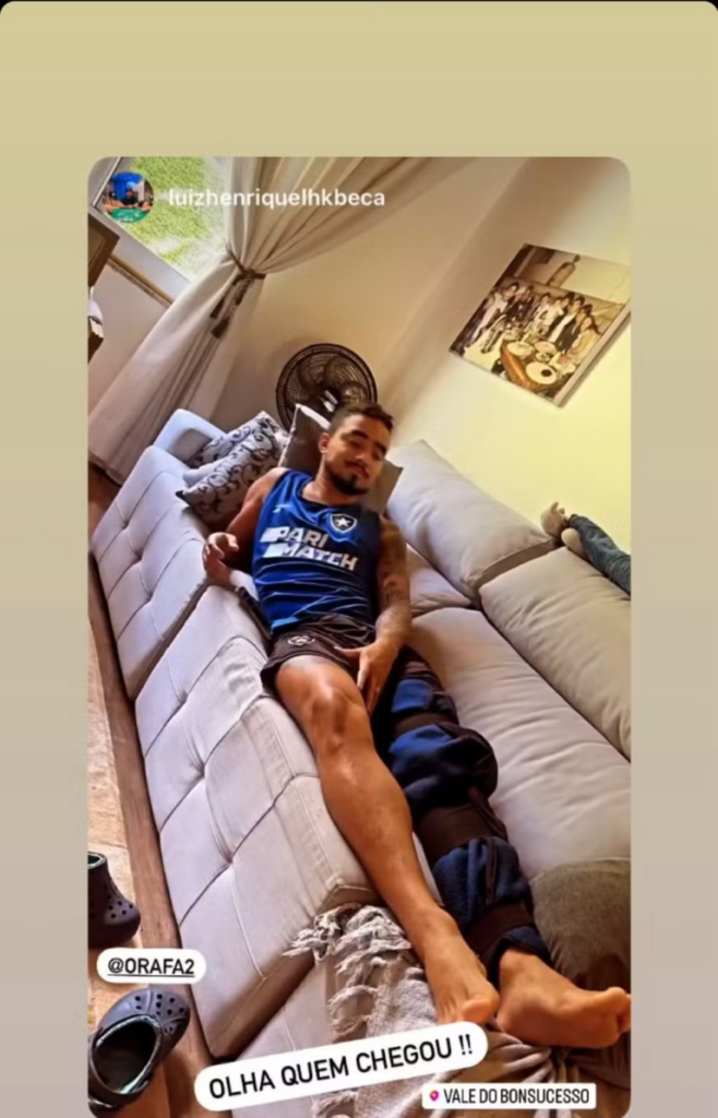 Na tarde do último sábado (13), o camisa 2 do Alvinegro repostou uma foto em que aparece deitado com a perna esquerda imobilizada. Após a publicação em suas redes sociais, torcedores já especulavam uma outra possível lesão do atleta. Confira abaixo: