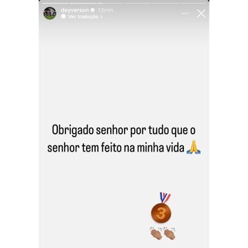 “Obrigado senhor por tudo que o senhor tem feito na minha vida”, escreveu o atleta, seguido de um emoji de medalha de terceiro lugar.