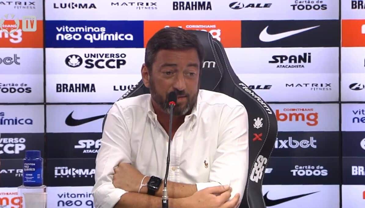 “Muitas vezes a gente é surpreendido por notícias que não são verdadeiras, por momentos que acontecem no clube, e apenas conversar com vocês, desmentir não serve. E para preservar o profissional, o diretor, tive que dar uma declaração forte para que terminassem as especulações. Vimos ontem, sobre o Tite, muita gente falando que estava fechado, se apresentaria e nós falando que nunca abrimos negociação. Hoje entendemos que o Mano é o melhor para o Corinthians”, explicou o dirigente.