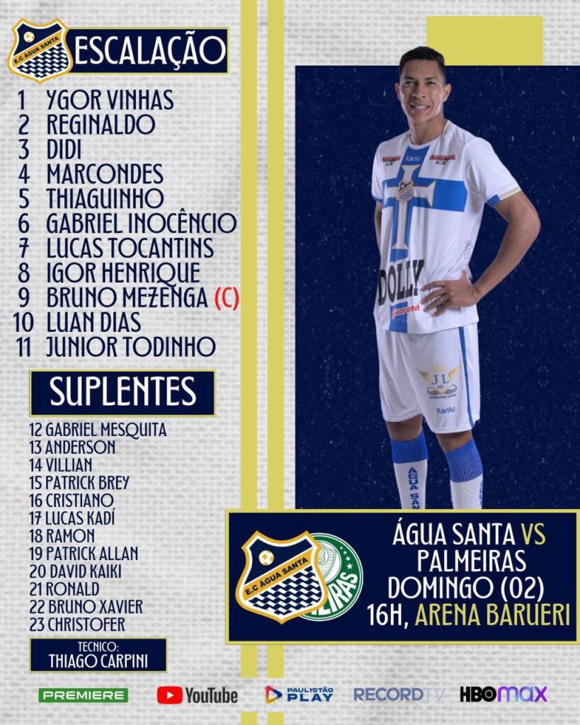 Em busca de seu 25º título, o Palmeiras está escalado para a decisão do Campeonato Paulista. A equipe comandada por Abel Ferreira não terá grandes baixas. Apenas Atuesta e Bruno Tabata serão desfalques certos na equipe. Com isso, Breno Lopes entra no ataque para formar o trio ao lado de Dudu e Rony.