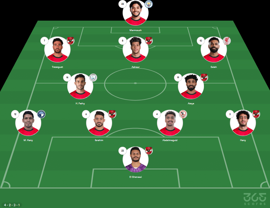Provável escalação do Egito: El Shenawi; Hany, Abdelmaguid, Ibrahim e Hany; Ateya e Fathy; Salah, Ashour e Trezeguet; Marmoush. Técnico: Hossam Hassan.
