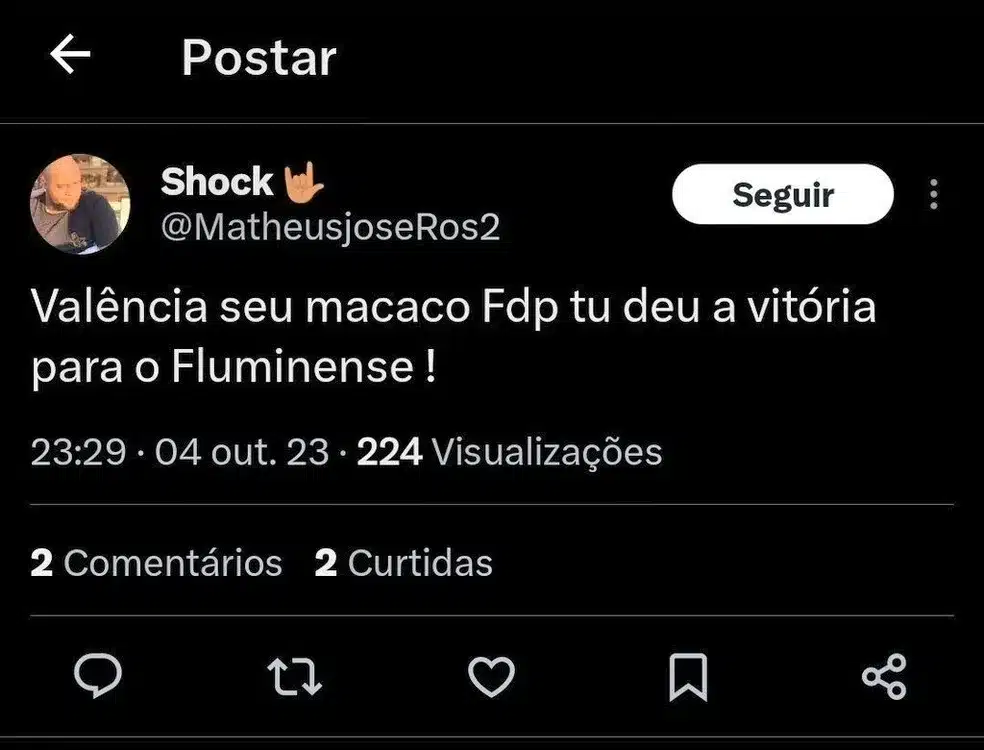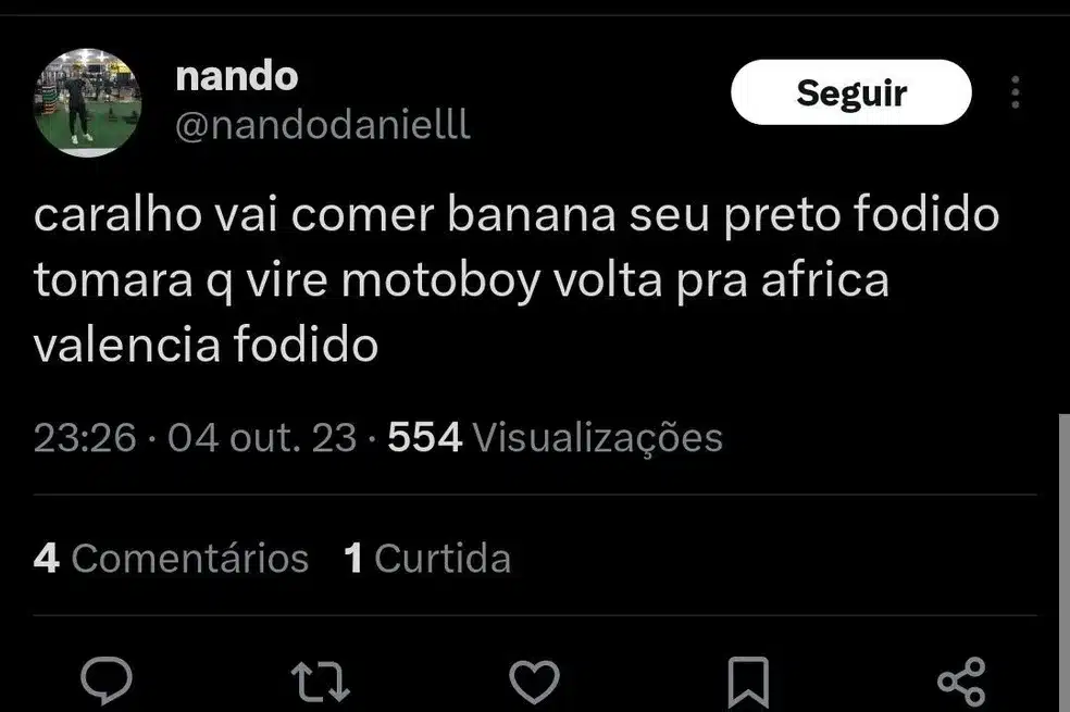 Nas redes sociais, houve diversas críticas o chamando, por exemplo, de “pipoqueiro” e lamentando a eliminação. Entretanto, é possível ver usuários no X, o antigo Twitter, publicando xingamentos racistas contra o camisa 13: