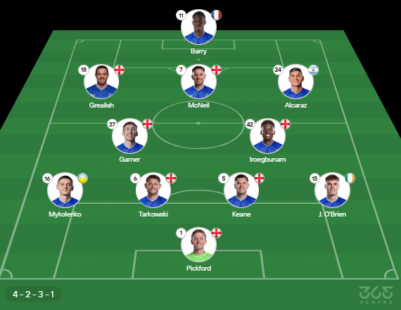 - Provável escalação do Everton: Pickford; O’Brien, Keane, Tarkowski e Mykolenko; Iroegbunam e Garner; Alcaraz, McNeil e Grealish; Barry