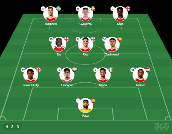- Provável escalação do Arsenal: Raya; Timber, Saliba, Hincapié e Lewis-Skelly; Zubimendi, Rice e Eze; Saka, Gyokeres e Martinelli