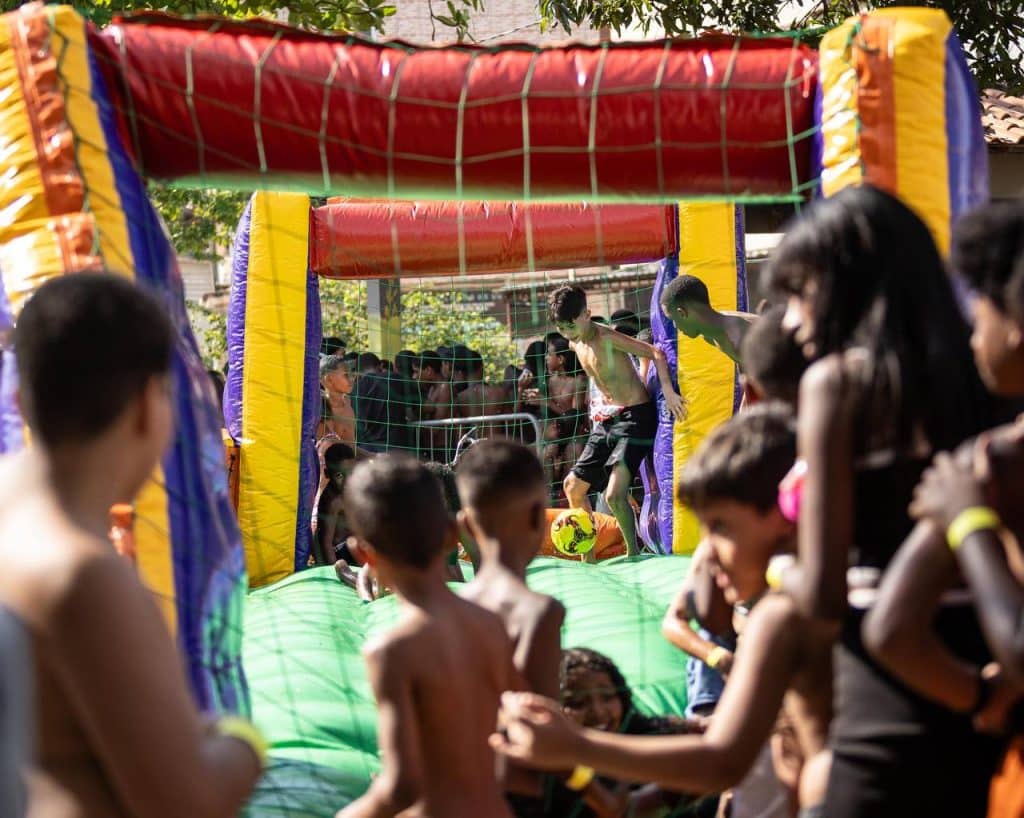 A programação começou pela manhã e seguiu até o fim da tarde, com diversas atrações voltadas para o público infantil. Houve brinquedos, serviços de barbeiros e trancistas, além de um animado torneio de futebol na quadra da praça.