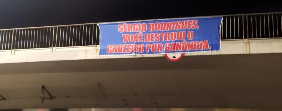 Alguns pontos de Belo Horizonte amanheceram com protestos pelo momento do Cruzeiro nesta terça-feira (21). As mensagens escritas em faixas cobram o gestor da SAF do clube, Ronaldo, e o presidente da associação, Sério Rodrigues.
