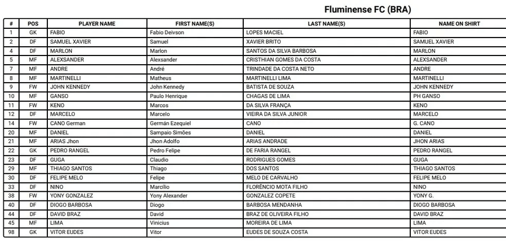 O Mundial de Clubes vai se aproximando e com isso, os clubes vão fechando a lista dos jogadores que participarão do torneio. Nesta quarta-feira (06), a Fifa divulgou os nomes dos atletas inscritos pelo Fluminense para a competição.