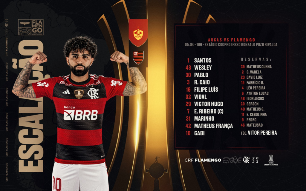 Vítor Pereira escolheu ir a campo para a estreia com uma equipe quase toda reserva devido à grande decisão do fim de semana e também desgaste dos jogadores. Gabigol, que era dúvida, foi escolhido para comandar o ataque ao lado de Matheus França e Marinho.