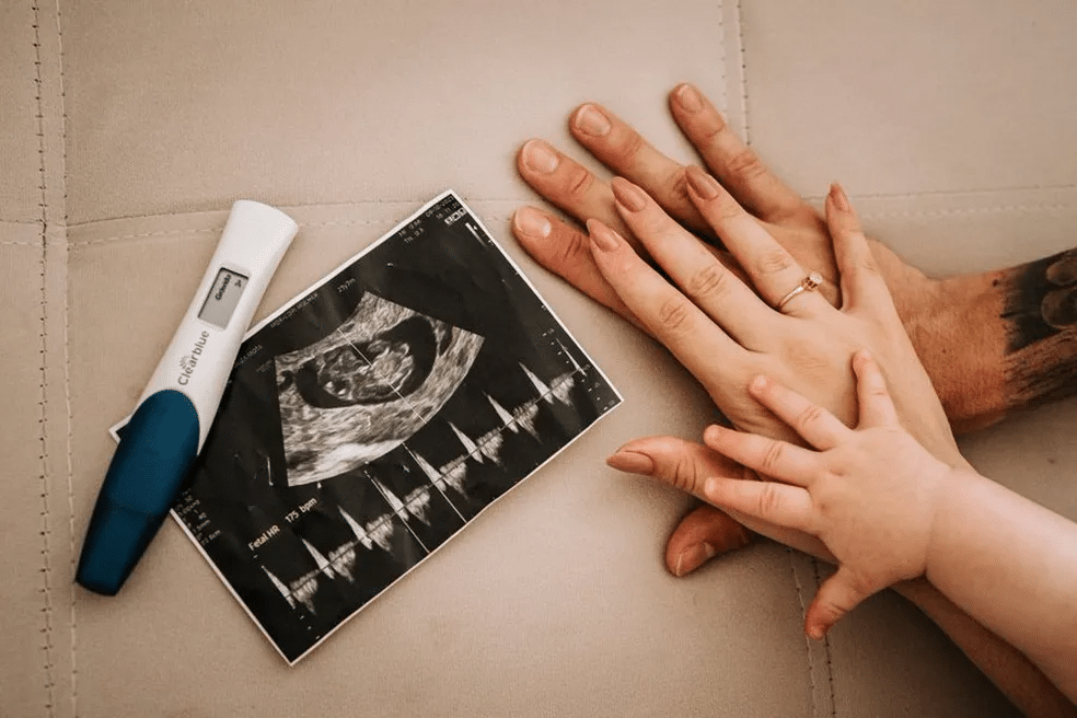Em uma postagem no Twitter/X, ela publicou uma foto com as mãos do casal e da pequena Sofia, além de um teste de gravidez e exame de ultrassonografia.