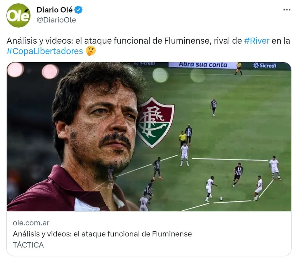 O principal jornal esportivo da Argentina, o “Olé”, debruçou-se sobre o “Dinizismo” nesta segunda-feira (01), véspera do jogo da Libertadores entre Fluminense e River Plate, que se enfrentam às 21h (de Brasília) da próxima terça-feira (02) no Maracanã.