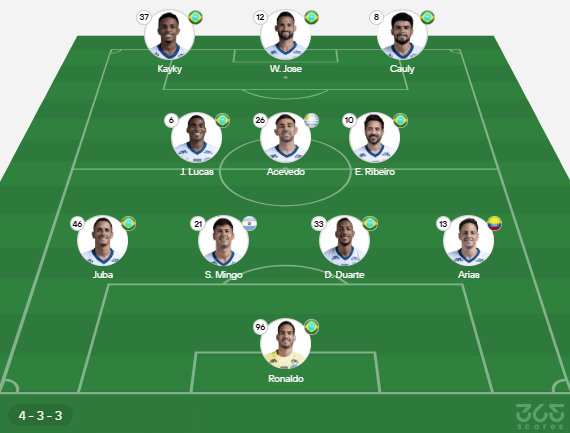 Provável escalação do Bahia: Ronaldo, Arias, David Duarte, Mingo, Luciano Juba; Acevedo, Everton Ribeiro, Jean Lucas; Cauly, Kayky, William José. Técnico: Rogério Ceni