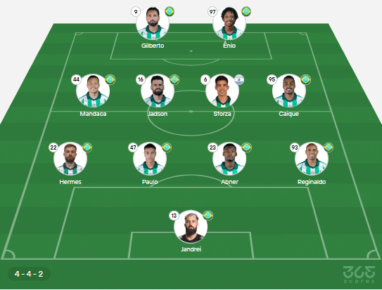 Provável escalação do Juventude: Jandrei, Reginaldo, Abner, Marcos Paulo, Marcelo Hermes; Sforza, Jadson, Caique, Luiz Mandaca; Ênio, Gilberto. Técnico: Thiago Carpini
