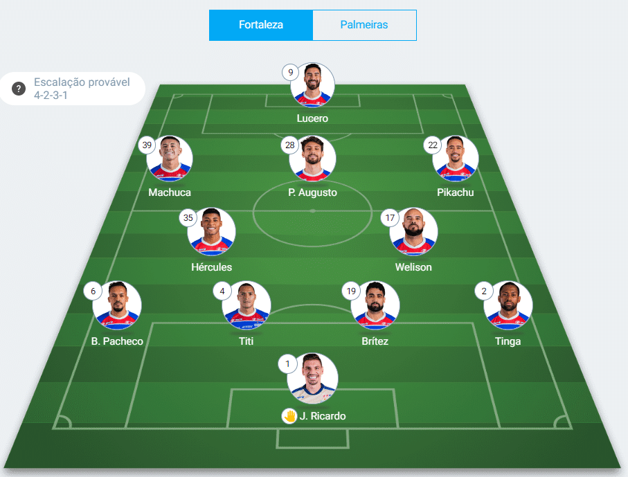 Provável escalação do Fortaleza: J. Ricardo; Tinga, Brítez, Titi, Bruno Pacheco; Hércules e Zé Welison; Pikachu, P. Augusto e Machuca; Lucero.
