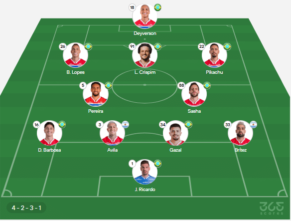 - Provável escalação do Fortaleza: João Ricardo, Brítez, Gazal, Ávila, Diogo Barbosa; Lucas Sasha, Matheus Pereira, Yago Pikachu, Breno Lopes, Lucas Crispim; Deyverson