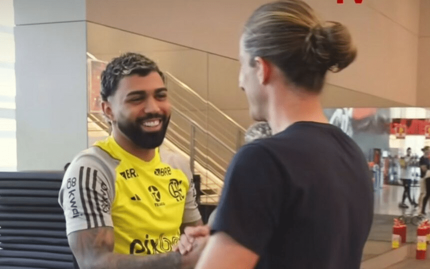 Por meio das redes sociais, o Flamengo divulgou imagens de Filipe Luís cumprimentando os jogadores. E, claro, Gabigol não perdeu a oportunidade e fez a seguinte pergunta: “Tudo bem, Mister?”. De forma descontraída, o ex-lateral e o camisa 99 se abraçaram.