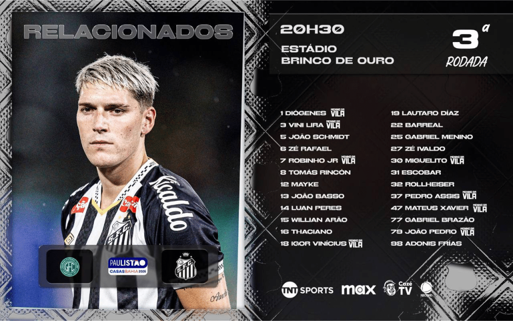 A partida Guarani x Santos terá transmissão de Record TV, TNT Sports, HBO Max e CazéTV. O 365Scores também fará a cobertura em tempo real, além de disponibilizar onde assistir aos jogos de hoje na TV.