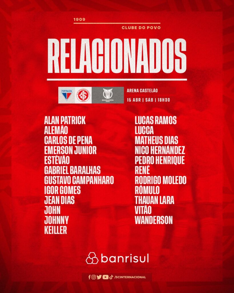 O Internacional entra em campo contra o Fortaleza no sábado, às 18h30, no Castelão, pela primeira rodada da Série A do Campeonato Brasileiro.