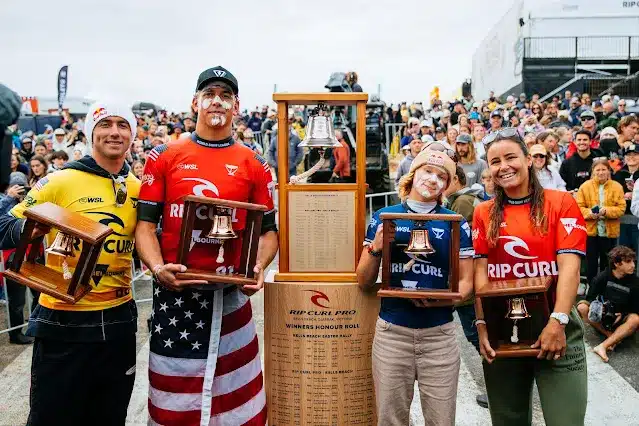 Chegou ao fim a disputa de Bells Beach, na Austrália, pela quarta etapa do Circuito Mundial da WSL, na madrugada (fuso horário de Brasília) desta quarta-feira (3). No masculino, o novato americano Cole Houshmand desbancou grandes nomes e conquistou seu primeiro título na elite do surfe. A sua conterrânea Caitlin Simmers, confirmando ótimo começo de temporada, foi campeã no feminino.