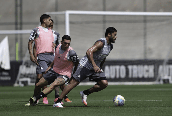 O elenco do Atlético-MG se reapresentou nesta segunda-feira (9), após a folga de domingo. Com Hulk, a equipe realizou um treino técnico/tático sob comando de Gabriel Milito e sua comissão.