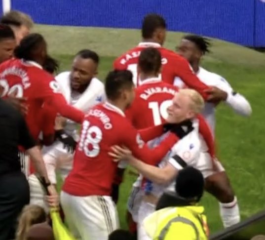 Apesar do resultado positivo para o Manchester United contra o Crystal Palace, o brasileiro Casemiro acabou levando a pior. Durante uma discussão generalizada no segundo tempo, o volante foi expulso por enforcar o adversário.