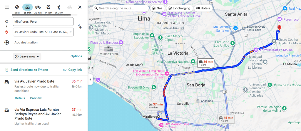 Os voos mais baratos ficam por conta daqueles que contam com escalas, podendo chegar a horas de conexão. As companhias mais bem avaliadas para realizar trechos de São Paulo-Lima e Rio de Janeiro-Lima são a LATAM e a Copa Airlines, com a Avianca correndo por fora nessa comparação. Santiago, no Chile, é a principal escala na viagem para o Peru.
