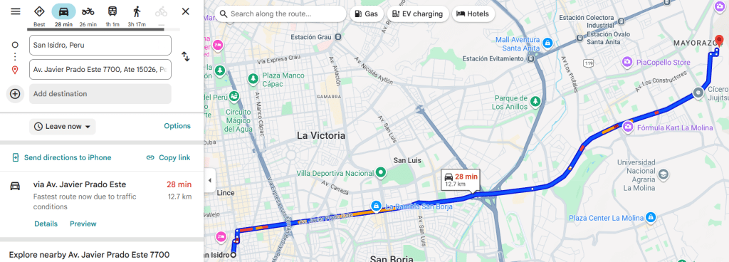San Isidro é um bairro ligeiramente mais próximo do Estádio Monumental: 12 quilômetros. De carro, o deslocamento leva algo em torno de 28 minutos, de acordo com cálculo do Google Maps.
