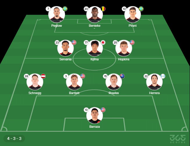 Provável escalação do DC United: Barraza; Schenegg, Bartlett, Rowles e Herrera; Servania, Kijima e Hopkins; Peglow, Benteke e Gabriel Pirani. Técnico: René Weiler.