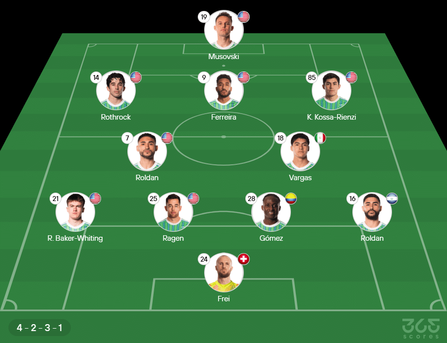 Provável escalação do Seattle Sounders: Frei, Baker-Whiting, Ragen, Gómez e Roldan; Roldan, Vargas, Rothrock, Ferreira e Kossa-Rienzi; Musovski. Técnico: Brian Schmetzer.