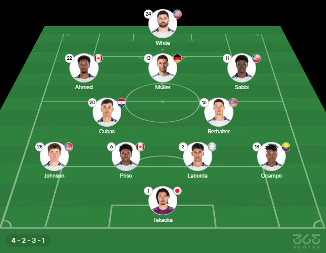 - Provável escalação do Vancouver Whitecaps: Takaoka; Ocampo, Laborda, Priso e Johnson; Berhalter e Cubas; Sabbi, Thomas Müller e Ahmed; White