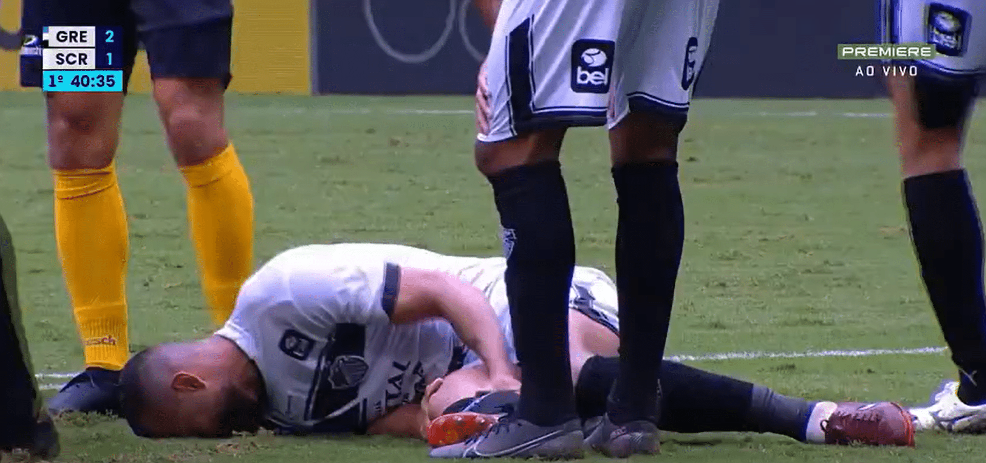 O lance ocorreu aos 40 minutos do primeiro tempo. Ao interceptar um passe na entrada da grande área, o defensor prendeu o pé no gramado e caiu com dores no joelho direito. Rapidamente, o árbitro Lucas Horn interrompeu a partida.