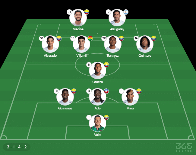 - Provável escalação da LDU: Valle; Quiñonez, Ade e Mina; Gruezo, Alvarado, Villamil, Ramírez e Quintero; Medina e Alzugaray.