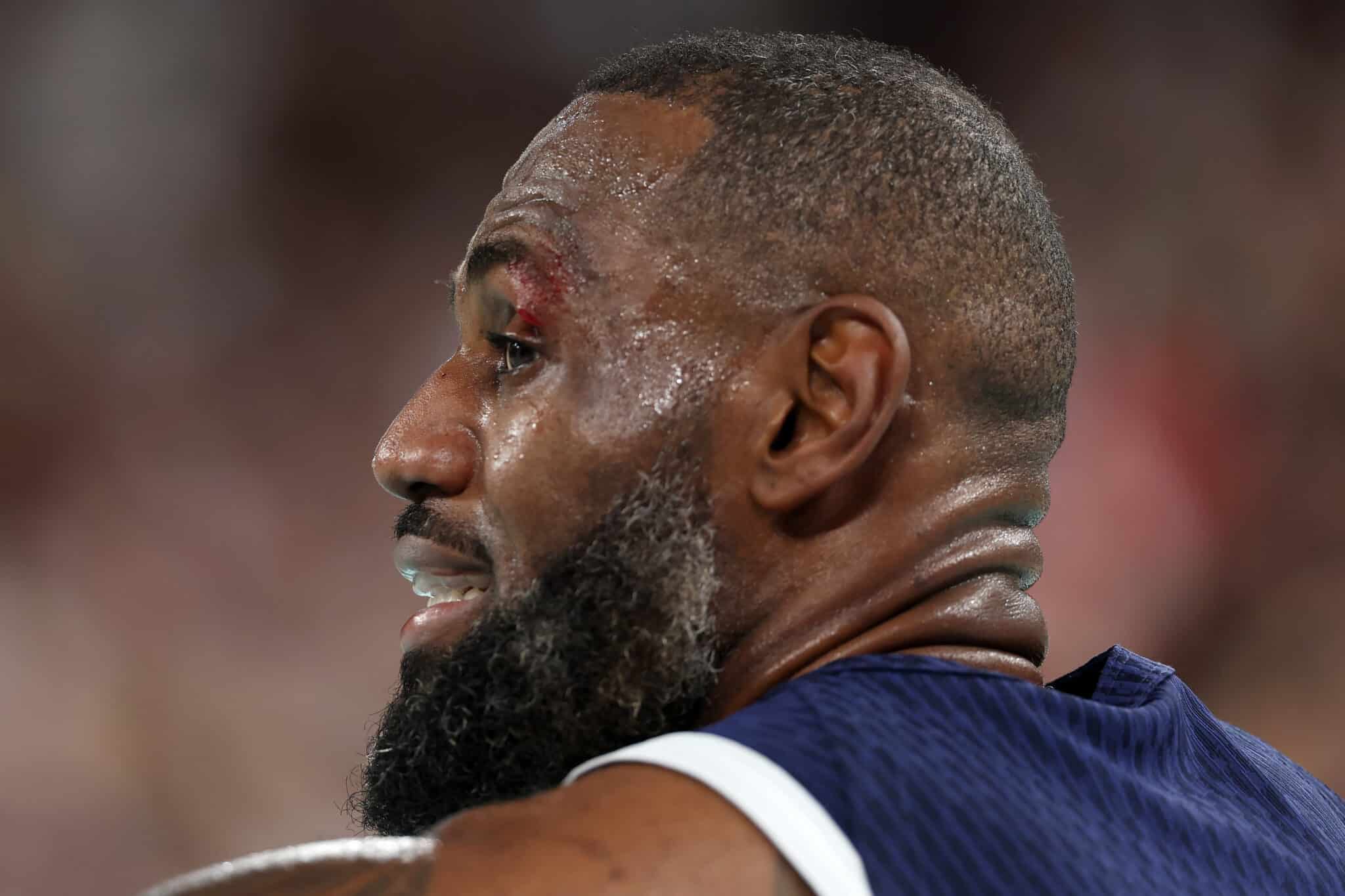 LeBron James leva quatro pontos no rosto após cotovelada de brasileiro nas Olimpíadas